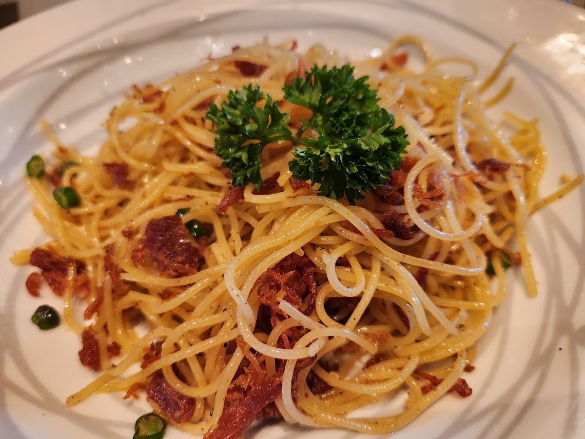 Food was good overall, although it probably depends on the dish. The Thai style salmon sashimi and the chilli paste fried rice with shrimp were good. But I didn’t enjoy the fried rice with dried beef, because i find dried beef a little tough to eat. I had ordered it out of curiosity. Maybe dried beef is just not my thing. The sour mango sorbet was ok. Service is good, staffs are friendly.